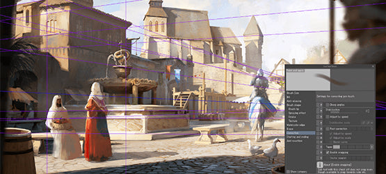 Draw buildings and interior designs with the perfect perspective using your favorite pen and brush tools, simply by setting up perspective rulers. Use the built-in symmetry rulers, ellipse rulers, and more to help with your designs and ideas.